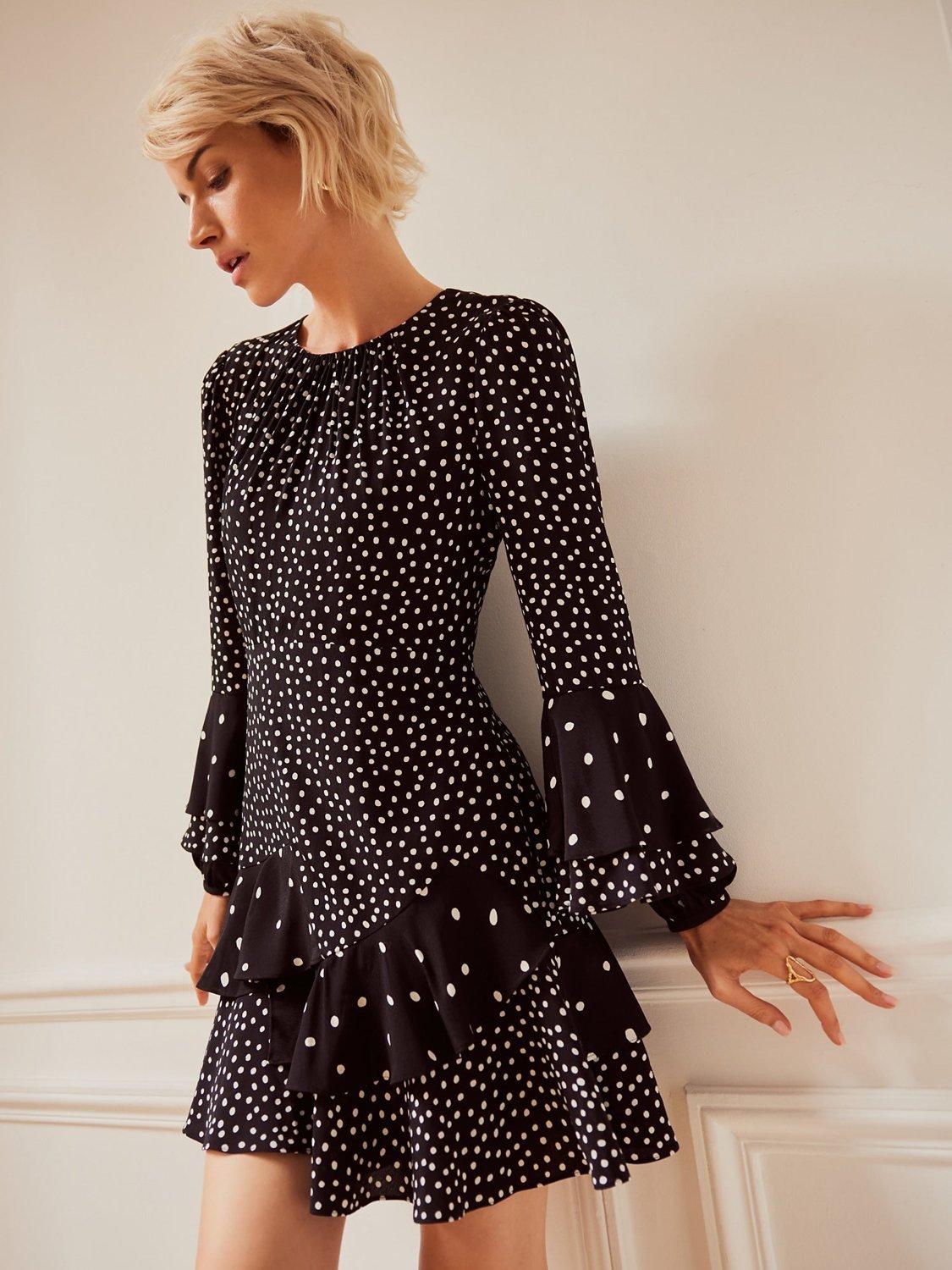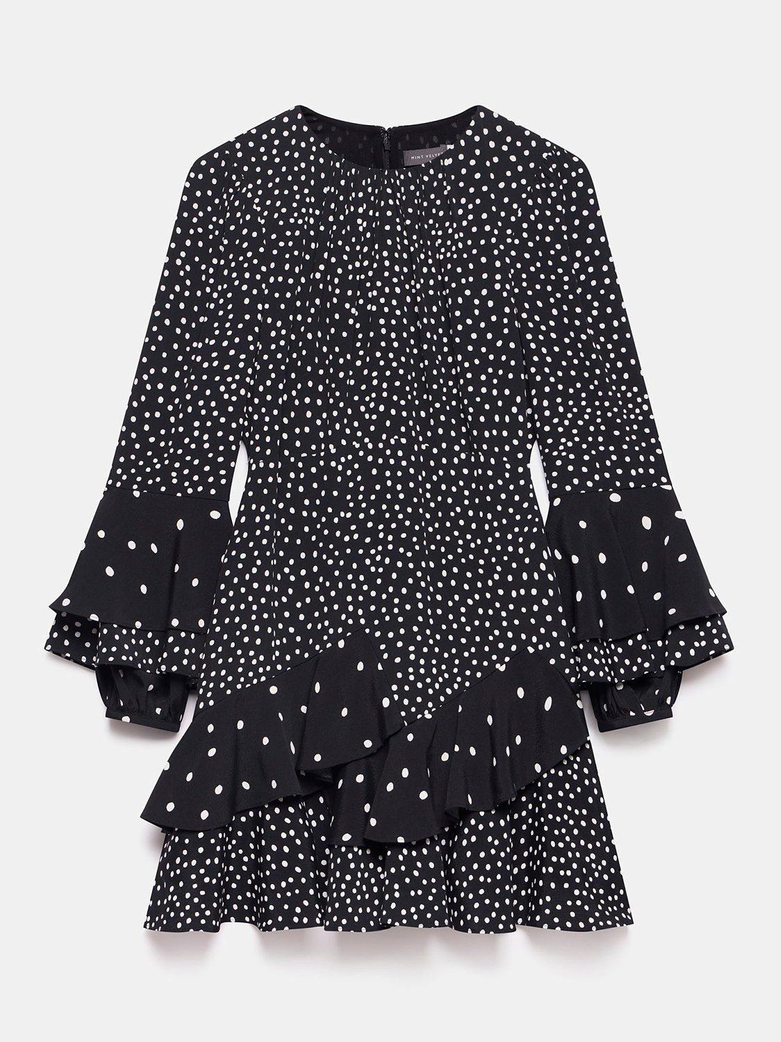 Product Name: Black and white polka dot ruffle dress sales
