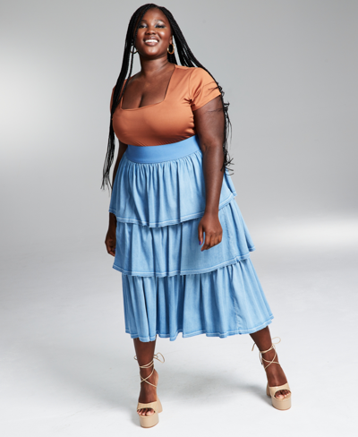 Product Name: Plus size denim ruffle skirt sales