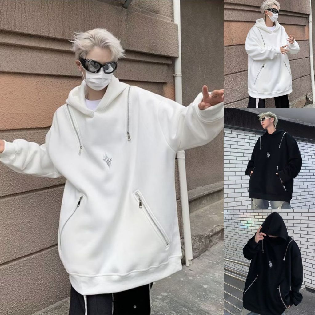 Product Name: Diagonal zipper hoodie mens sales