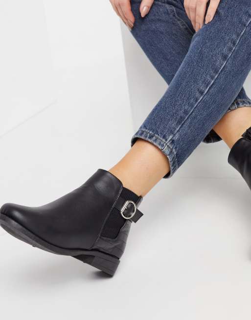 Product Name: Flat black ankle boots with buckles sales