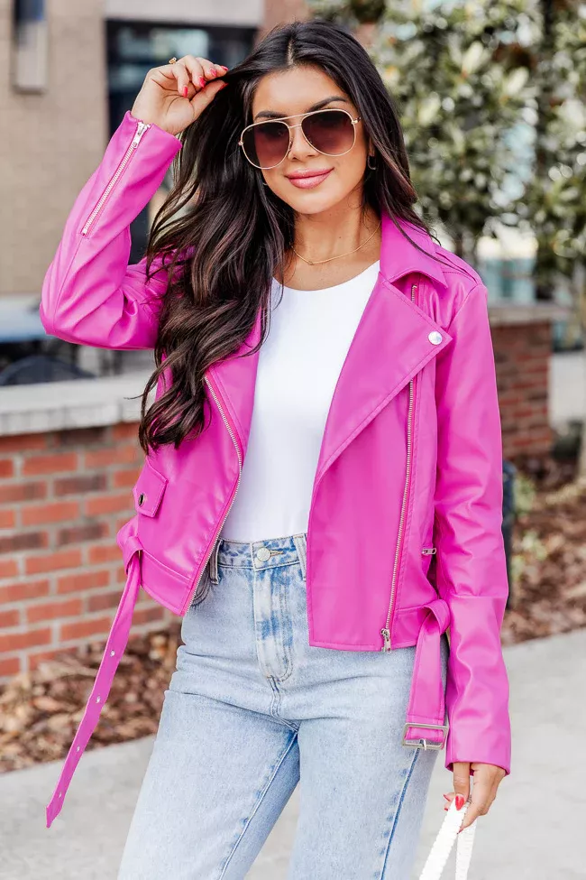 Product Name: Hot pink leather jacket outfit sales